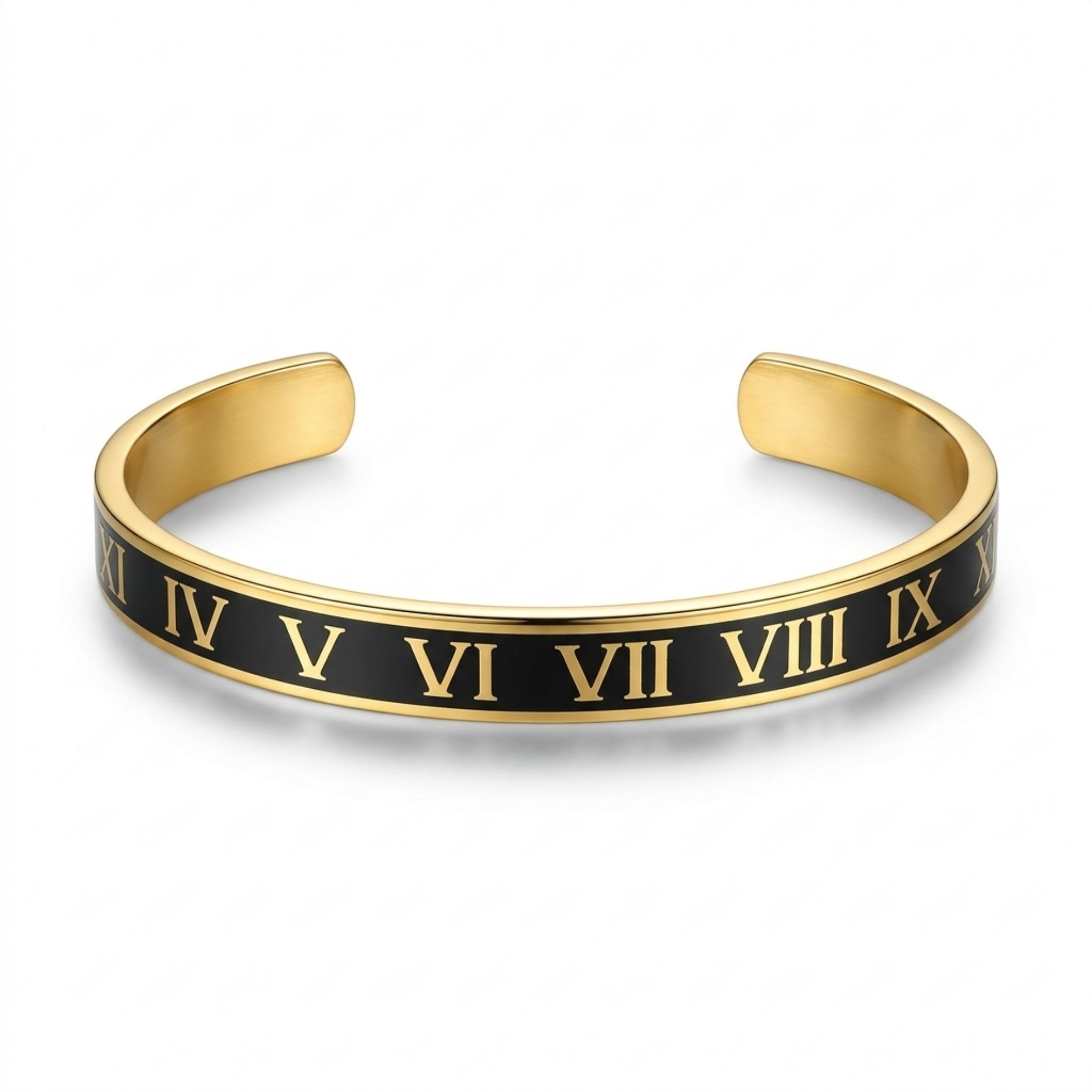 Roman Numeral Cuff Bracelet – Gold & Black Open Cuff Design