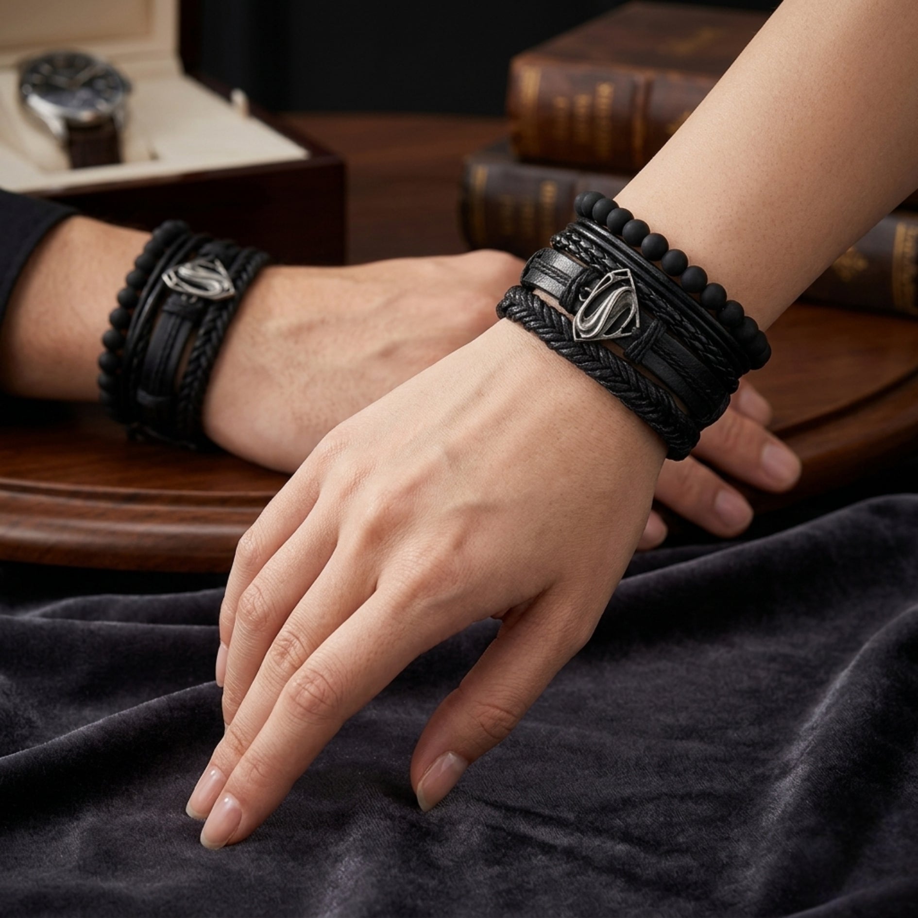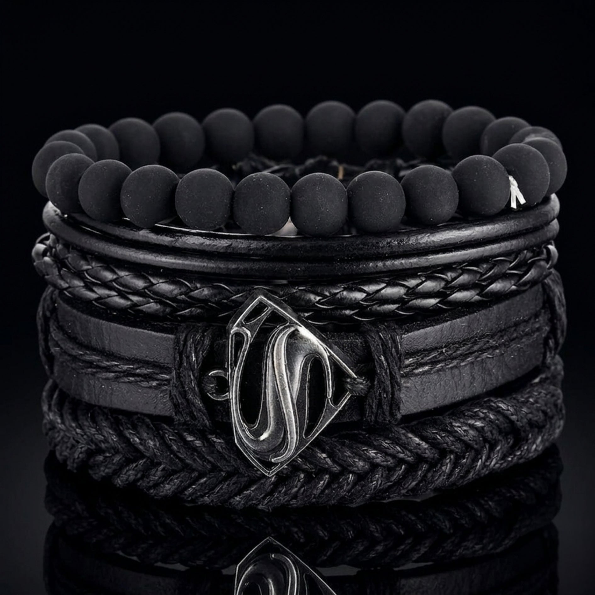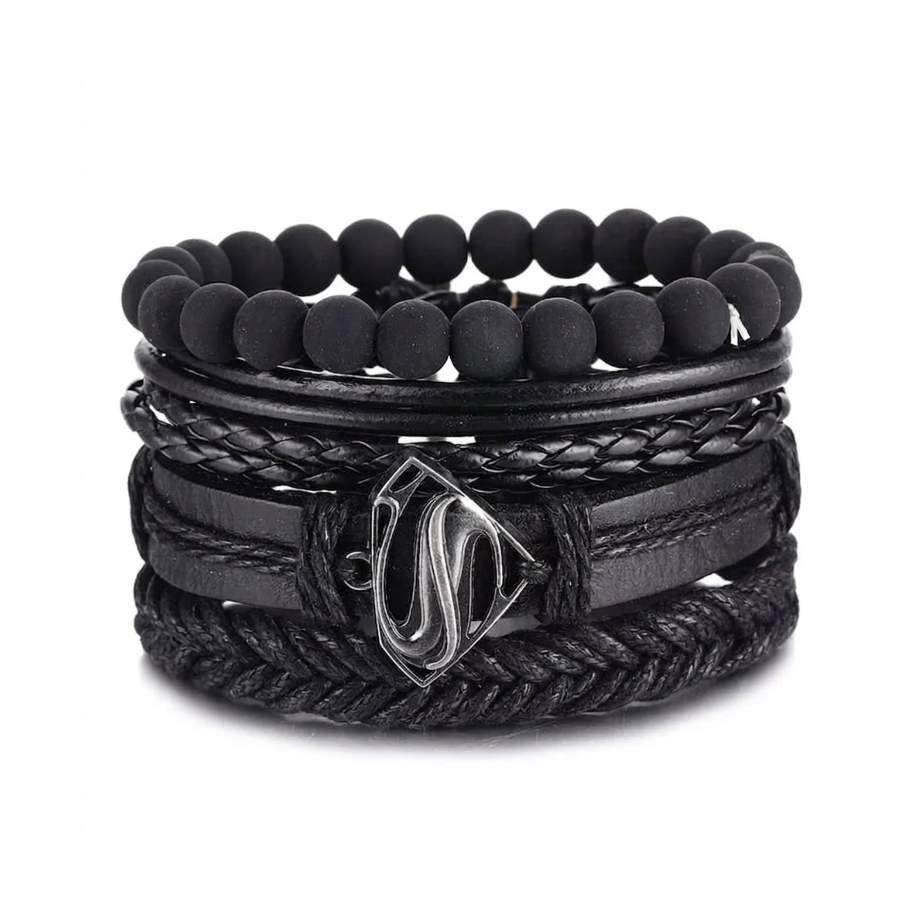 Superman Multi-Layer Bracelet Set – Braided Leather & Bead Design
